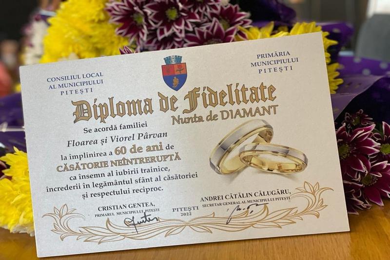 66 de cupluri din comunitatea piteșteană, care aniversează peste o jumătate de secol de căsătorie, au fost premiate de autoritățile locale.