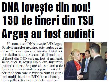 Un nou dosar DNA loveşte PSD Argeş. Potrivit surselor noastre, este vorba de un nou dosar DNA în care apare şi familia Drăghici, dar victime sunt de această dată mai mulţi tineri din PSD care au fost şi urmează să se ducă la sediul DNA din Bucureşti pentru audieri. Se pare că este vorba de un dosar instrumentat de procurorii anticorupţie prin care se verifică cum au ajuns mai mulţi tineri din PSD într-o tabără politică plătită din fonduri de la minister. Se pare că este vorba de o tabără ce s-a desfășurat în urmă doi ani şi jumătate, la scurt timp după ce Georgiana Drăghici ar fi fost aleasă ca preşedinte al TSD Argeş. După această victorie s-ar fi organizat o tabără la Poiana Braşov, într-un hotel ce aparţine Complexului Sportiv Naţional care se află sub ordinea Ministerului Tineretului şi Sportului. Coincidenţă sau nu, director al Ministerului Tineretului era Cristian Meleşteu, finul lui Mircea Drăghici. 100 de tineri din PSD Argeş au mers atunci în această tabără. Costurile se pare că au fost achitate prin minister, printr-un parteneriat încheiat între Ministerul Tineretului şi Sportului şi un ONG din judeţul Argeş. Tinerii nu au ştiut însă că aceste costuri sunt plătite printr-un proiect cu fonduri de la minister şi au crezut că este vorba doar de o tabără politică, plătită de conducerea organizaţiei de tineret. Motiv pentru care beneficiarii au şi postat poze pe facebook de la munte, în care scriau că este vorba de o tabără politică. Se pare că a fost vorba apoi şi de o plângere făcută chiar de către o tânără din TSD Argeş. Anchetatorii au început audierile în acest dosar şi în aceste zile zeci de tineri din PSD Argeş care au fost în tabără sunt chemaţi la DNA Bucureşti, la audieri.