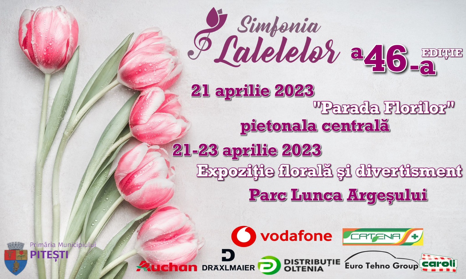 La o săptămână după Sărbătorile Pascale ortodoxe, comunitatea piteșteană va celebra o nouă ediție a Simfoniei Lalelelor, evenimentul reprezentativ pentru Pitești, supranumit, datorită festivalului dendro-floricol cunoscut în toată țara, „Orașul lalelelor”!