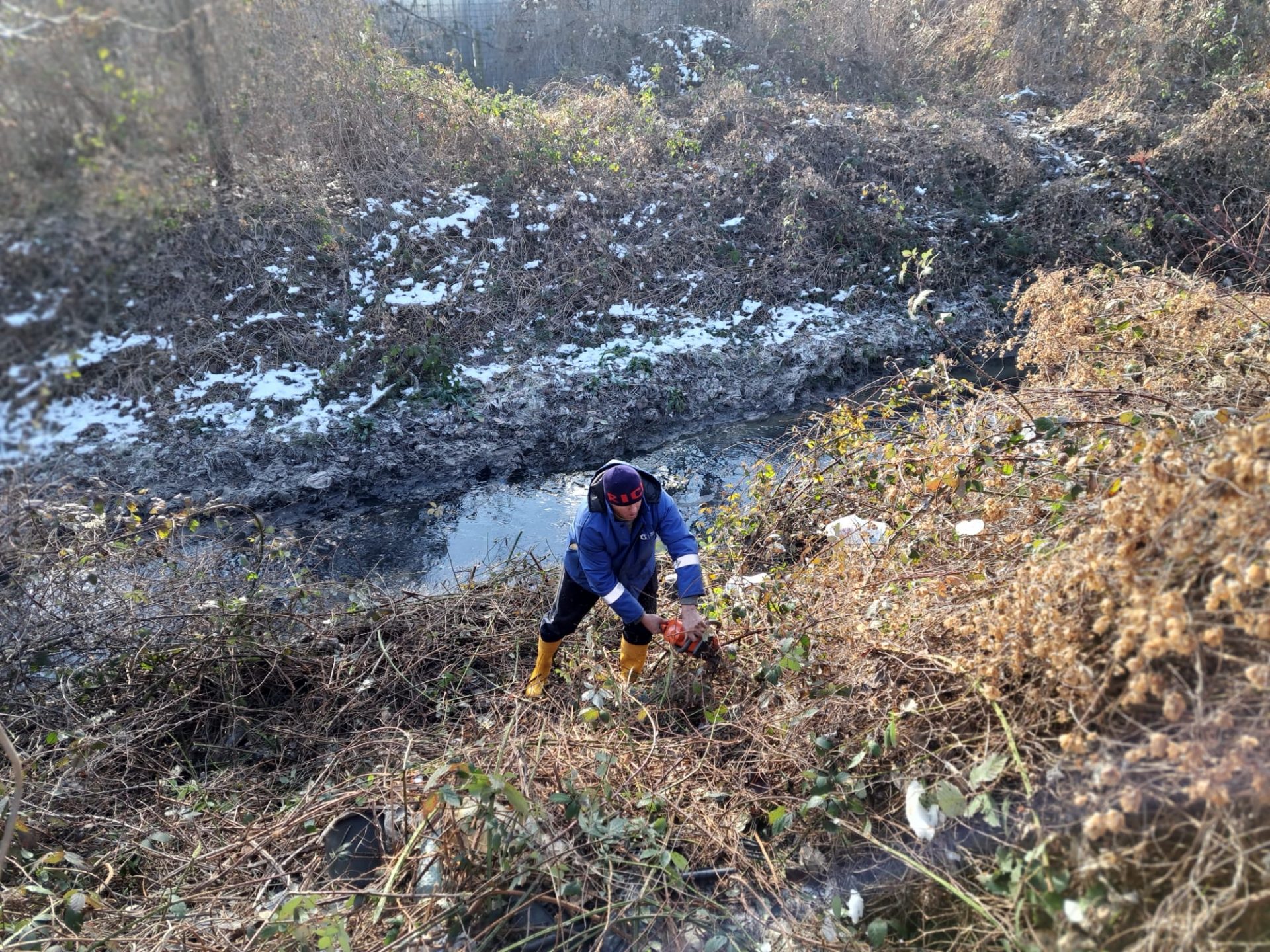 Formația de Intervenție Rapidă a Sistemului de Gospodărire a Apelor Argeș a început de la prima oră a dimineții acțiunile de curățare a malurilor văii poluate și colectarea reziduurilor pentru a preîntâmpina o nouă poluare accidentală. În zonă se acționează cu materiale de tip spill sorb, lavete, perne și baraje absorbante.