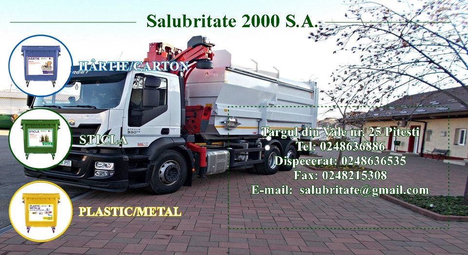Salubritate 2000 SA reamintește abonaților casnici, din municipiul Pitești, graficul săptămânal de colectare a deșeurilor reciclabile din hârtie/carton, plastic/metal.
