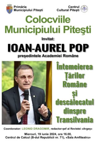 Președintele Academiei Române, prof. univ. dr. Ioan-Aurel Pop, invitat în cadrul proiectului cultural „Colocviile Municipiului Pitești”! Miercuri, 19 iunie, de la ora 16:00, în Sala Amfiteatru de la Centrul de Calcul (Bulevardul Republicii, nr. 71), actualul sediu al Primăriei Muncipiului Pitești, va avea loc conferința cu tema „Întemeierea Țărilor Române și descălecatul dinspre Transilvania”, în […]