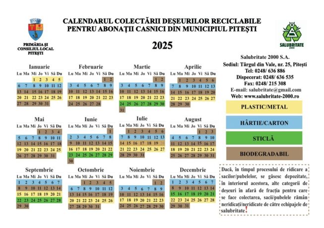 Graficul de colectare a deșeurilor reciclabile pentru abonații casnici din municipiul Pitești, 2025!