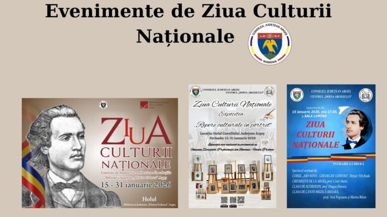 Argeș: Manifestări cu prilejul Zilei Culturii Naționale Cu prilejul Zilei Culturii Naționale, joi, 15 ianuarie 2026, instituțiile de cultură subordonate Consiliului Județean Argeș organizează o serie de manifestări dedicate omagierii marelui poet național Mihai Eminescu și promovării valorilor culturii române în rândul publicului larg. Astfel, Muzeul Județean Argeș, în colaborare cu Colegiul Național „Zinca Golescu”, […]