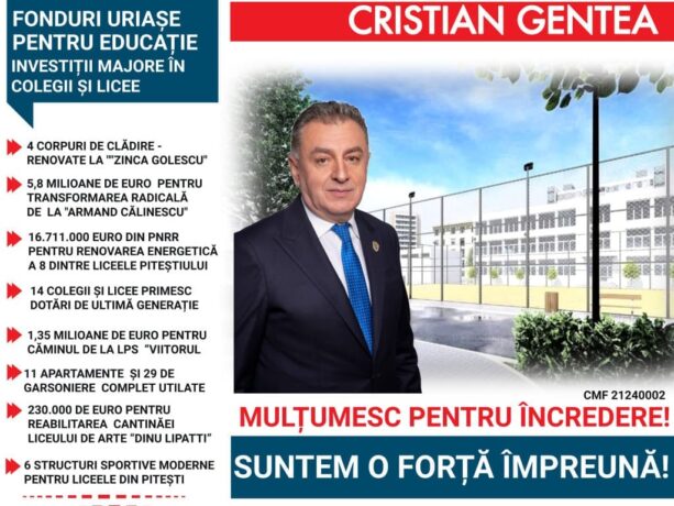 Cristian Gentea: Cred în învățământul de calitate, în șansele pe care școala românească trebuie să le asigure tinerilor Cristian Gentea, primarul municipiului Pitești, afirmă că el crede cu tărie în învățământul de calitate, în șansele pe care școala românească trebuie să le asigure tinerilor pentru a putea accesa – mai departe – o pregătire solidă […]