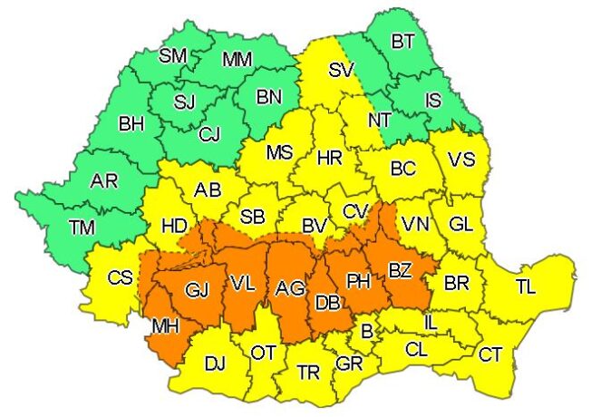 Meteorologii au emis luni o avertizare Cod portocaliu de furtuni și vânt pentru 16 județe din țară, valabil până marți dimineața. Potrivit ANM, sunt vizate de Codul portocaliu județele Bihor, Sălaj, Cluj, Mureș, Brașov, Sibiu, Alba, Hunedoara, Arad, Timiș, Caraș-Severin, Mehedinți, Gorj, Dolj, Vâlcea și Argeș. În aceste zone vor fi intensificări ale vântului, rafale […]