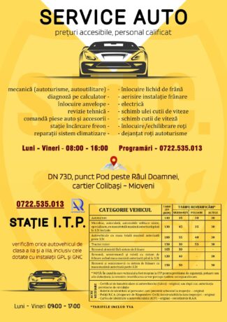 Stație ITP & Service auto la SEdC Mioveni Linia de inspecție tehnică periodică (ITP) de la SEdC Mioveni este acreditată RAR și asigură verificarea tehnică periodică obligatorie a mașinii în cele mai bune condiții, anunță SC Servicii Edilitare pentru Comunitate Mioveni. Program: L-V: 09 – 17. Service auto multimarcă, autorizat RAR, cu echipamente de diagnosticare […]