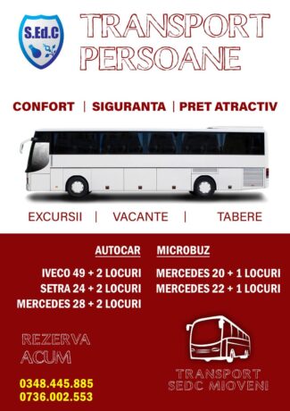 Servicii Edilitare pentru Comunitate Mioveni pune la dispoziție, contra cost, mijloace de transport pentru efectuarea de curse intern și internațional. Climatronic, cu minibar, frigider, scaune confort, personal cu vastă experiență în transport, autocarele si microbuzele noastre vă asigură un nivel ridicat de confort și siguranță. În funcție de numărul de kilometri și de durata deplasării, […]