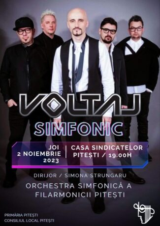 “VOLTAJ Simfonic”, în premieră, la Pitești! Vă reamintim de Concertul Eveniment al Orchestrei Simfonice a Filarmonicii Pitești, cu trupa VOLTAJ! Evenimentul va avea loc joi, 2 noiembrie, la Casa Sindicatelor din Pitești. Bilete găsiți online: https://www.bilete.ro/voltaj-simfonic/voltaj-simfonic-02-nov-2023/, dar și la casieria Filarmonicii.