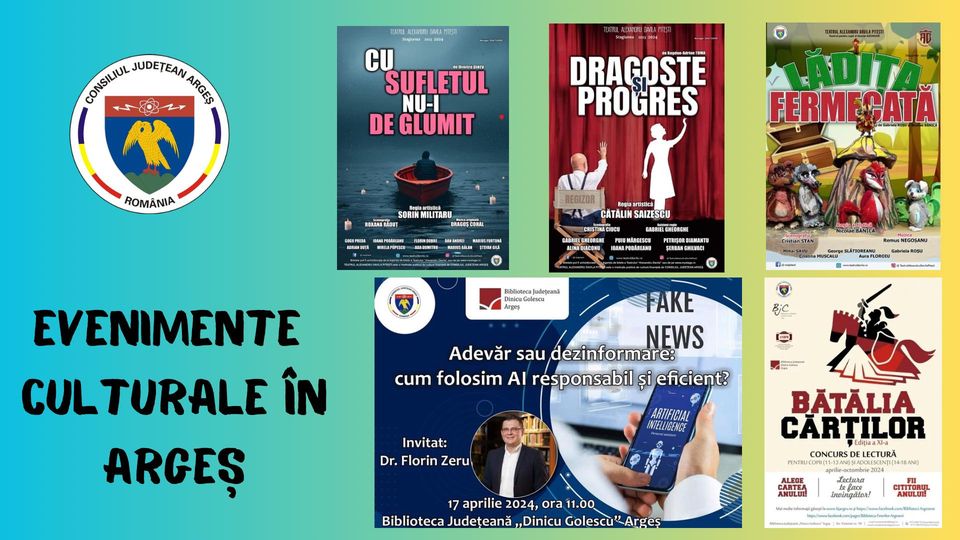 Ora 11.00 – WORKSHOP – ADEVĂR SAU DEZINFORMARE: CUM FOLOSIM AI RESPONSABIL ȘI EFICIENT? – Atelier de familiarizare a participanților cu conceptele de bază ale AI și cu modul lor de aplicare, astfel încât dezinformarea online să poată fi identificată, analizată și contracarată; invitat: dr. FLORIN ZERU. (Sala de Conferințe – Biblioteca Județeană Argeș)